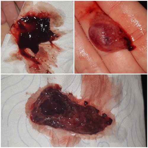 Ik hoop voor je dat het gewoon stolsels zijn en alles nog goed zit.