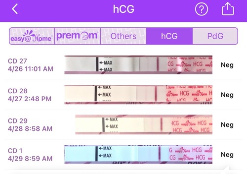 Ik zie verschillende tijden staan, dit kan verschil maken. Is het ook je ochtend urine? Alleen 28 & 29 april zijn rond hetzelfde tijdstip en deze zou ik zelf niet vergelijken omdat HCG langer nodig heeft dan 24 uur om te verdubbelen, ik zou zeker morgen nog eens testen en deze vergelijken met de test van 4/28.