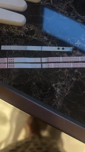 In hoeveel tijdsbestek zijn de testen gedaan? Ik zie op de middelste de streep het duidelijkst dus positief! Hcg verdubbeld elke 48-72 uur.