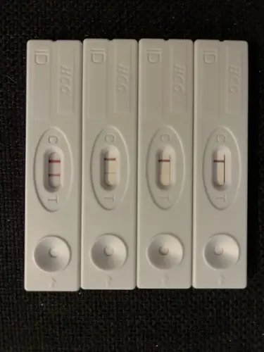 Ik zou een bloed test aanvragen. Voorzichtig gefeliciteerd