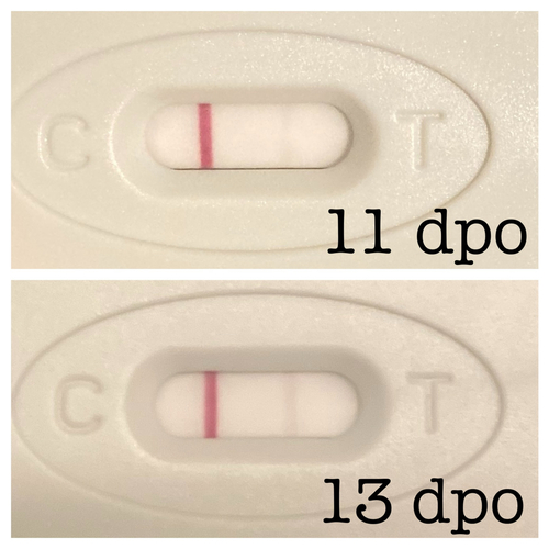 Je ziet allemaal van die knaltesten langs komen met 14 dpo, dus dan ben je toch geneigd om te denken dat het dan “wel niet helemaal goed zou zijn”.