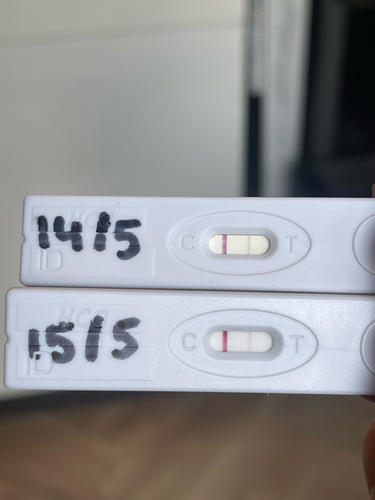 Dit waren mijn testen, nu toch echt 39.4 wk 😊 Ik zou er 1 dag tussen laten ...