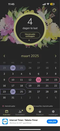 Volg mijn menstruatie altijd met een app en die is altijd correct geweest