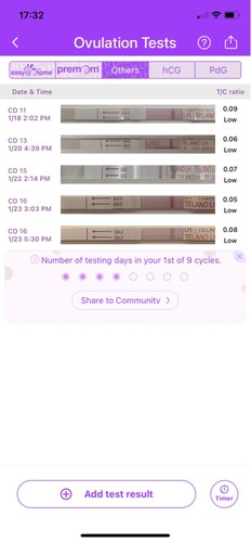 Ja! Eergisteren een positieve ovulatietest. Ik zat toen op dag 21 van mijn cyclus.
