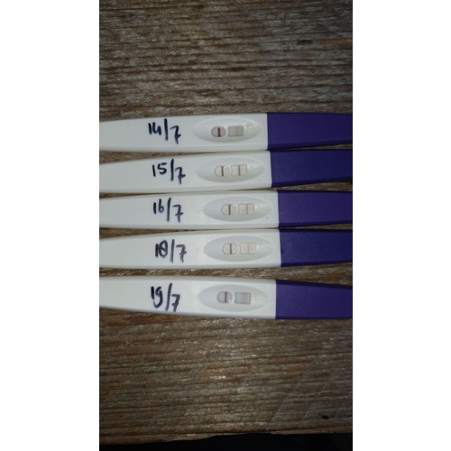 En als je de twijfel uit je hoofd wil hebben of je misschien zwanger bent na die lichte ongesteldheid, doe dan gewoon een zwangerschapstest ipv een ovulatietest, weet je het meteen. Ja, ovulatietesten k煤nnen reageren op zwangerschapshormoon, maar dan zou je verwachten dat ze dagenlang zo blijven knallen als de echt positieve. En dat zie je nu overduidelijk niet. Dus ik denk dat je een gewone cyclus hebt! Maar nogmaals, wil je het zeker weten, gooi er 1x een zwangerschapstest tegenaan. En sowieso stoppen nu met de ovulatietesten want je hebt je piek gevonden en vanaf nu gooi je elke dag geld weg als je test.