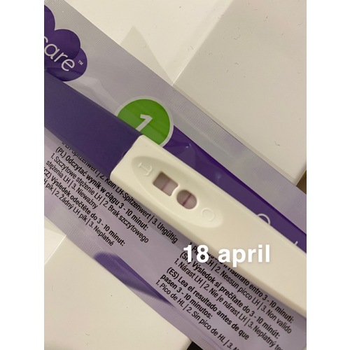 Wat je ook zou kunnen doen is de roze clearblue ovulatietesten gebruiken als je denkt met dipsticks of andere ovulatietesten gevonden te hebben. Dan krijg je een smiley te zien en is het duidelijk: LH-piek. Dat doe ik ook. Zodra ik merk/denk m鈥檔 piek gevonden te hebben met m鈥檔 Action testen, test ik daar achteraan met de roze clearblue. Natuurlijk hoop ik dat je die niet meer nodig zult hebben en wens ik jou veel geluk en succes 馃崁馃崁. Het lijkt wel alsof je piek 18/19 april was, dat wel.