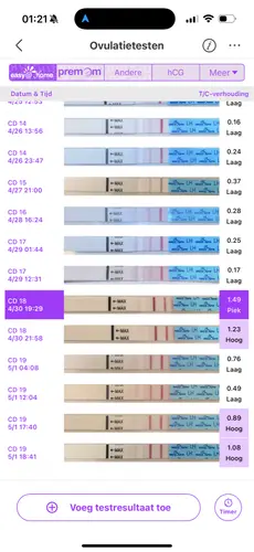 Mijn advies: stop met testen en stop ook met deze app. App maakt er een zooitje van. Eigen waarneming blijft echt het beste. Volg uitsluitend de instructies uit de bijsluiter strak op, nooit vanaf wijken.