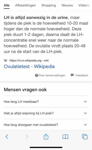 Zoals ik hieronder had vermeld, er zit altijd lh hormoon in de urine waardoor je een streep krijgt, pas als de eisprong nadert zal deze stijgen en de streep donkerder worden