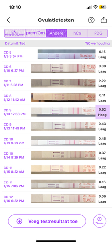 Goeie tip! Thanks! Volgens de app ga ik morgen de vruchtbare periode in en staat de ovulatie geland op vrijdag aanstaande. Dit is natuurlijk een gemiddelde dus wilde kijken of de test gelijk zou lopen. Ben idd bang de piek te missen 🙈