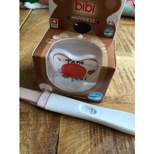 Ik had al een klein voorgevoel dat ik positieve test zou krijgen, dus heb op mijn NOD een grote doos gevuld met repen roze en blauw crepepapier en de doos gevuld met allerlei cadeautjes (sokjes en speentje met I ♡ papa, een mutsje, een boek voor papa en een kaart met de zwangerschapstest). De volgende ochtend een positieve test en papa de doos gegeven onder het mom van een verlaat extra verjaardagscadeau (hij was 2 weken daarvoor jarig). Hij was echt even in shock, hadden het allebei niet zo snel verwacht :)