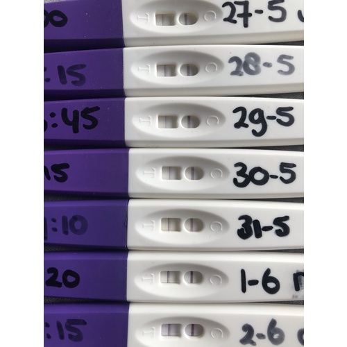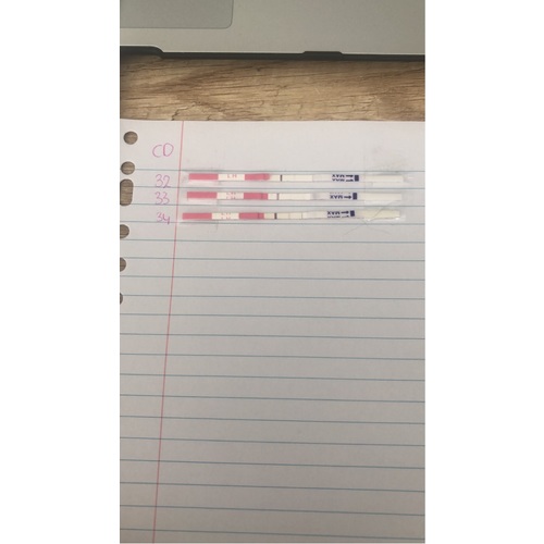 Zou iemand hier wijs uit kunnen? Ik heb nog niet eerder zo’n duidelijke streep gehad (ik ben nog maar een maand met ovu testen bezig). Zou het kunnen dat dit dan een piek is met pcos? Vandaag was hij overigens weer heel lichtjes