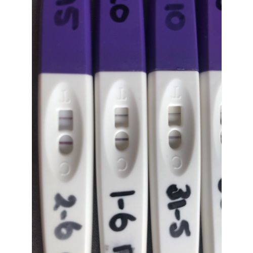 Dames ik kom even in deze topic binnen vallen, misschien kan iemand mij helpen..? Ook ik heb PCOS en wil deze maand eens kijken of ik mijn eisprong kan vinden met ovulatietesten. Elke dag een streepje.., maar is die van gisteren (1-6) al positief of nog niet? Hij is niet helemaal ingekleurd maar al wel donker.. ik word er nog niet veel wijzer uit 😅