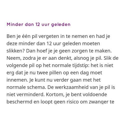 Als het goed is staat er in de bijsluiter een hele mooie beslisboom die je kunt volgen bij een vergeten of late pil.