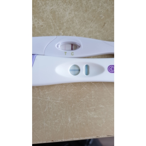 Dit was mijn 'niet zwanger' test. Naar de huisarts geweest en bleek niet zwanger. Maar je geeft aan dat je 2 positieve testen hebt dus dat ziet er veelbelovend uit! 🍀