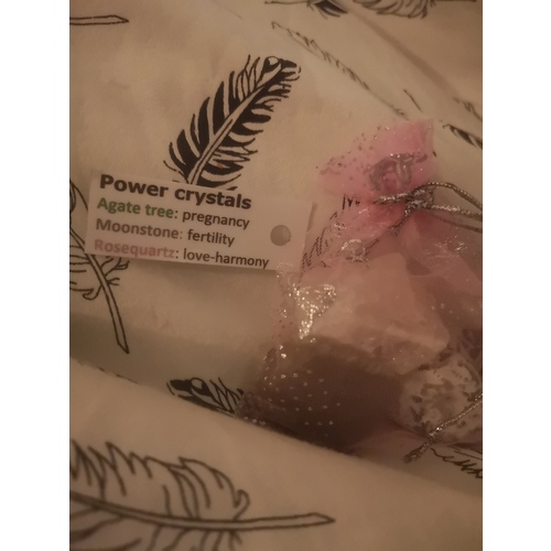 Ik ben ook snel zwanger geworden en droeg toen een maansteen-ketting. Geen idee of het geholpen heeft, maar vind het idee wel heel mooi. Helaas is het uitgelopen op een missed abortion en ben ik nu in afwachting van een miskraam.