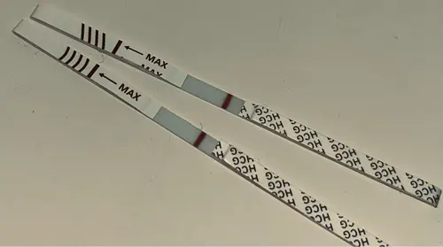 Als je er echt heel zeker van bent dan is dit een vals positieve zwangerschap test.