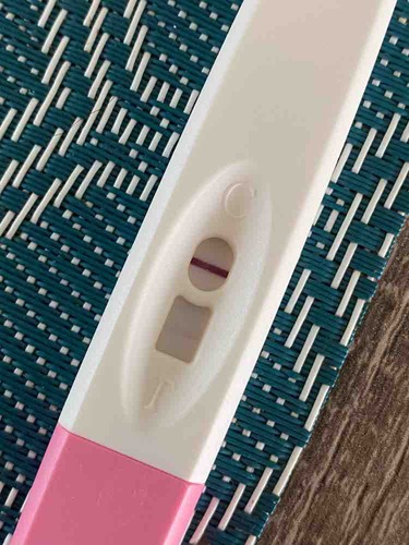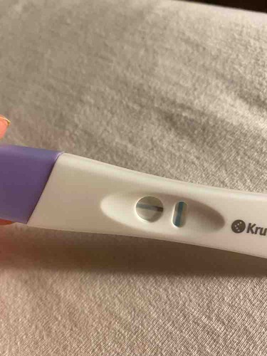 Hier een denk ik positieve test?? Kweet t niet.. twijfel enorm dus hoop nog niks. Al een week elke dag druppeltje bloed verlies meer niet. 5 dagen overtijd