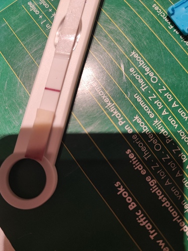 Bij een positieve test is het streepje van dezelfde dikte en is het roze of blauw.