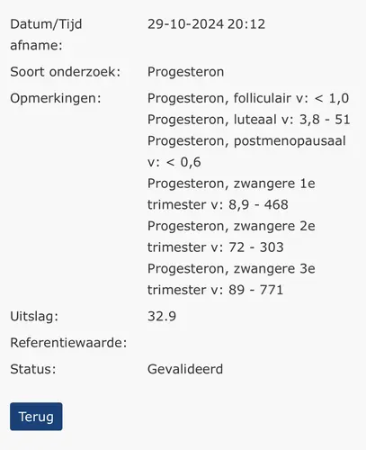 Van de week ook geprikt op progesteron. Waarde 30.6