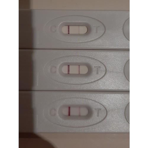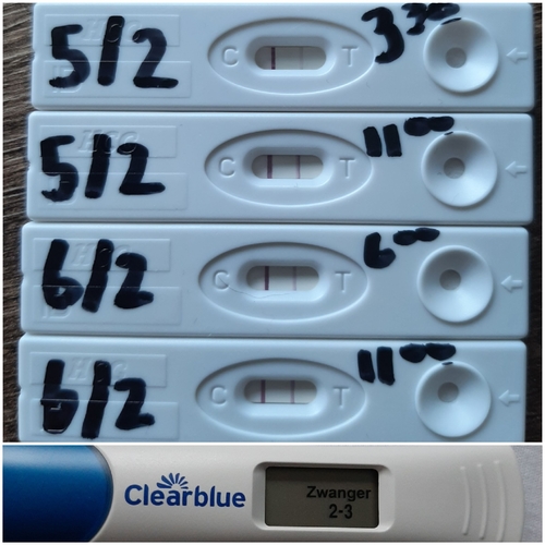 Ik had op me nod een licht streepje en teste de laatste keer 4 dagen later om te kijken of ik een knalstreep had.