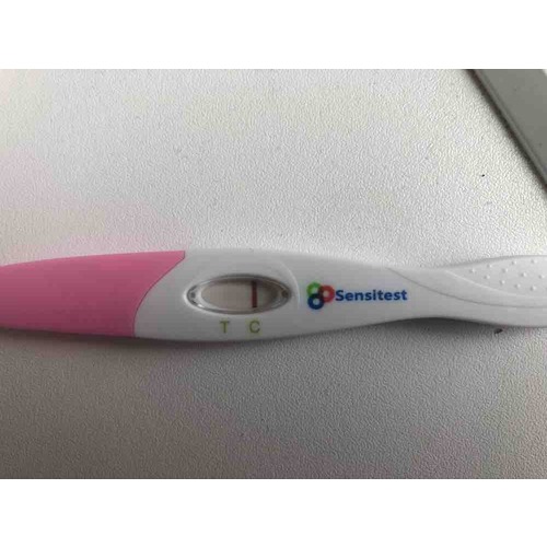 Ik zie toch een treep hoor! Ik gebruikte die testen ook, en als ze negatief zijn blijven ze ook omi wit! Geen tuurstreepje, toen ik een positieve test had 6 dagen voor mijn nod begon het ook heel licht en dag nadien veel duidelijker, ik zou morge of overmorgen nog eens testen, succes! En ik duim voor je! 🍀