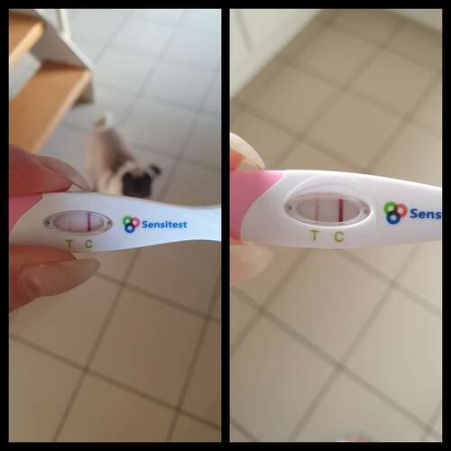 Links was paar min, rechts was na 10 min en dat 6 dagen voor nod 🥰 zondag ben ik 21 weken 🥰