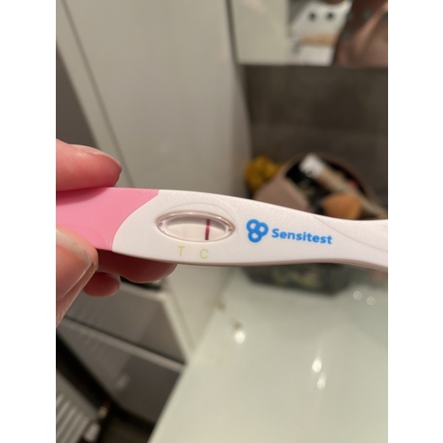 Dit was mijn eerste test, 3 dagen overtijd. Links ook een sensitest, superlicht. Daarna naar de kruidvat, daar test gehaald en een iets duidelijkere streep. Inmiddels 24.1!