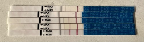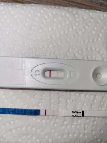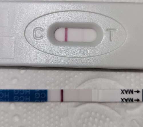 Iemand al eerder getest met sensitest dipsticks? Ik kreeg vanochtend dit resultaat. Is dit positief/werd dit bij jullie duidelijker? Ik ben nu 10dpo 鈽猴笍. Foto is net na afnemen (achtergrond is nog roze)