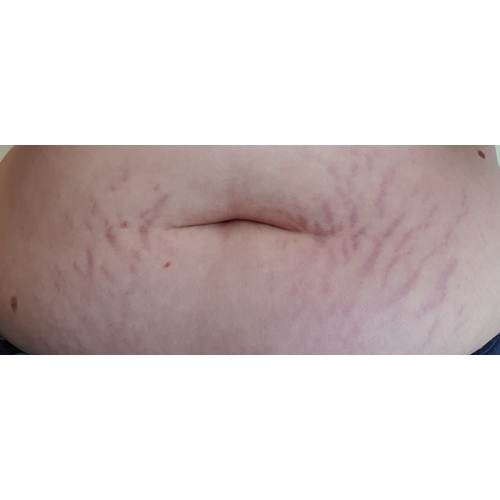 Het is inderdaad striae, komt voor als je huid snel groeit. Dit kan bij een zwangerschap, maar even goed door andere vormen van 'groei'.