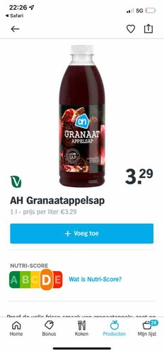 Bedoel je dan 1 volle glas per dag? En ook nog ééns een granaatappel? Is da ...