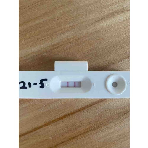 Hi , 16/5 testte ik heel licht het was al avond en het was een dag zelfs voor mijn 1e nod , 21-5 testte ik als op de foto knal rood! Vandaag clearblue gehaald kwam op 2-3 weken ( komt overeen met mijn zwangerschap 4+6)