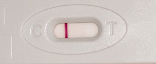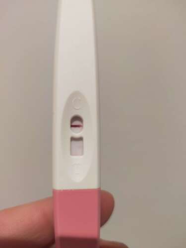 Ik zie wel een streepje maar hij is wel een beetje gek idd, je zou kunnen proberen om nog een test te doen en te kijken of het streepje daar wel gewoon normaal recht zit.