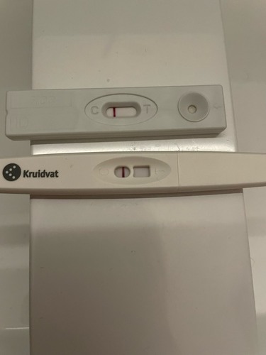 Ik heb ook een test gedaan. En deze was negatief. Het was wel vanmiddag en met een test die over de datum is. Maar betekent denk ik niet veel goeds?