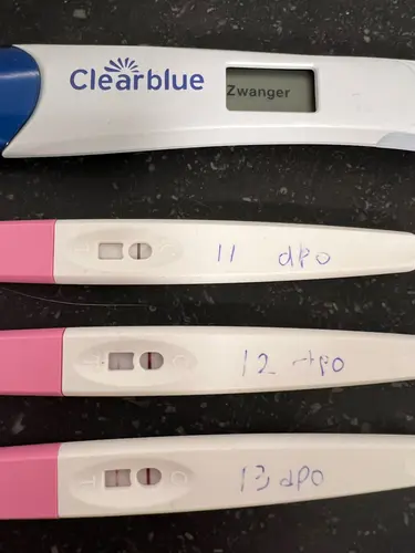Hee, ik heb een vraagje. Kan je aan de donkerheid van een test zien of je zwanger bent van een tweeling? Door de letrozol en de echo’s die ik kreeg rond mijn eisprong zagen ze dat er 2 eitjes groeide. Nu ben ik zwanger en benieuwd of ik dit voor de echo al kan weten. In de foto zie je de testen van 11 tot 13 dpo.