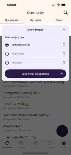 Bij mijn groepen kun je een groep, zoals fertiliteitstraject, toevoegen aan je favorieten. Succes!