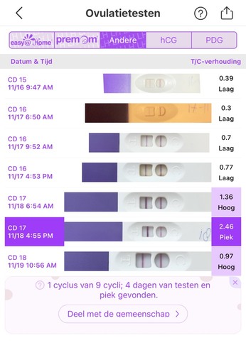 Heb je 1 of 2x per dag getest? Ik zou nu nog even doortesten maar als je 1x per dag hebt getest heb je hem misschien gemist wellicht tussen de derde en vierde test? Ik zou persoonlijk als hij eruit ziet zoals de tweede of zeker de derde 2x per dag gaan testen om je ovulatie niet te missen. Ik deed met de tweede urine van de dag rond 9:30 dus uitplassen in de ochtend, niks drinken en dan testen bij de volgende plas. En rond 17:00 waarvoor ik 2-3uur niks gedronken had. Misschien heb je er iets aan. Succes!