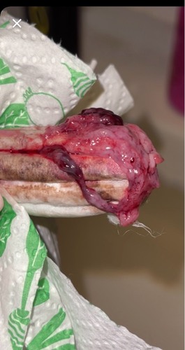 Heb je het stuk weefsel bewaard? De huisarts of gynaecoloog zou dit naar het lab kunnen sturen om te kijken wat het is.