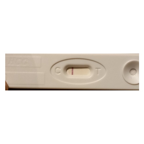 Dit was mijn test van deze maand toen ik dus niet zwanger bleek te zijn. Hij leek zelfs roze. Ik kreeg het niet goed op de foto.