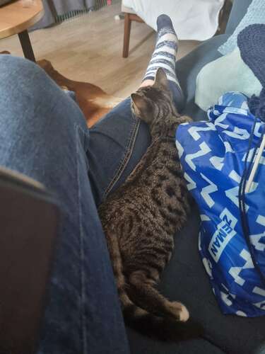 Zo lief! Mijn kat doet het af en toe en dan hooguit een halfuurtje, dan gaat ie weer ergens anders liggen. Heb het idee dat hij juist soms expres mij vermijd 馃槀