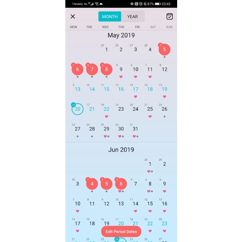 Dan volgt vanzelf een log met cyclus gemiddelde, voorspelling vruchtbare dagen etc.