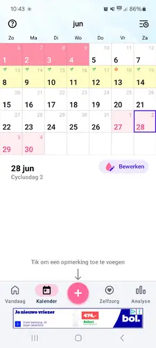 Heb idd wisselende cyclus, de app die ik gebruik gaat uit van gemiddelde v ...