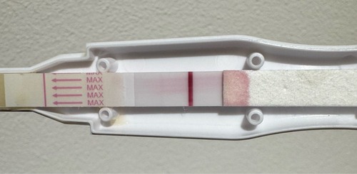 Ik begrijp wat je zegt. Het lijntje stond er al toen de test nog dicht was. Door het venster kon ik het moeilijk op de foto krijgen. Dus het lijntje bleef exact hetzelfde, alleen is het venster er vanaf. Wat maakt de test eigenlijk ongeldig als je hem uit elkaar haalt? Oprechte vraag zonder oordeel.