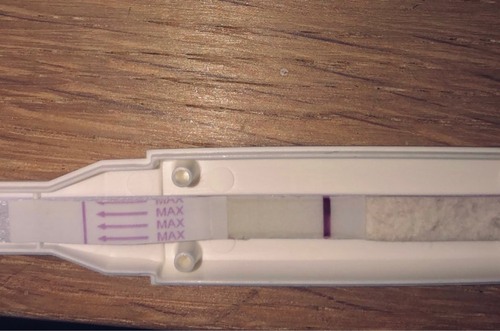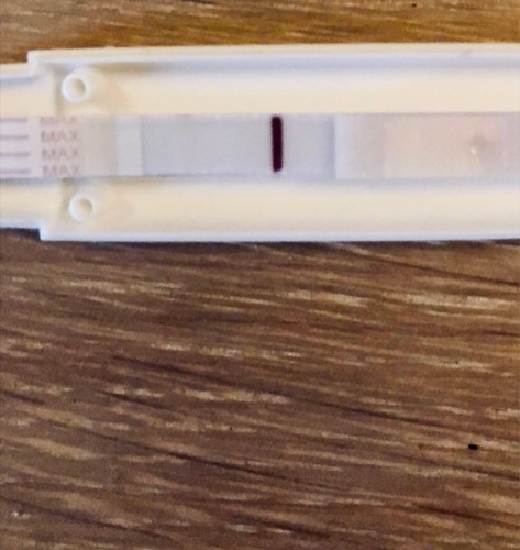 Deze test is al uitgedroogd, ver uitgedroogd. Heb je een foto van binnen 5 minuten ?