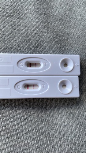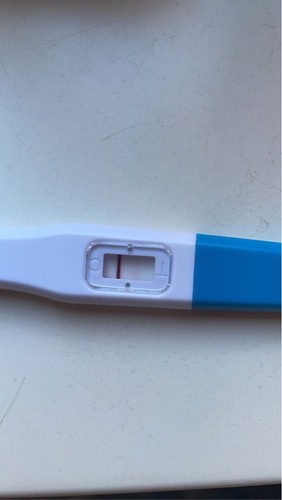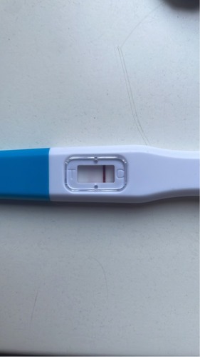 Volgens de bijsluiter is zo’n test ongeldig. Hij mag er niet gek uitzien dat de inkt tot de helft doorloopt. Ook uit ervaring weet ik 1000% zeker dat deze test niet correct is. Onze wens ging pas na een aantal jaar in vervulling en heb heel wat testjes gedaan. Helaas ook wel eens met een slechte batch zoals deze ertussen.