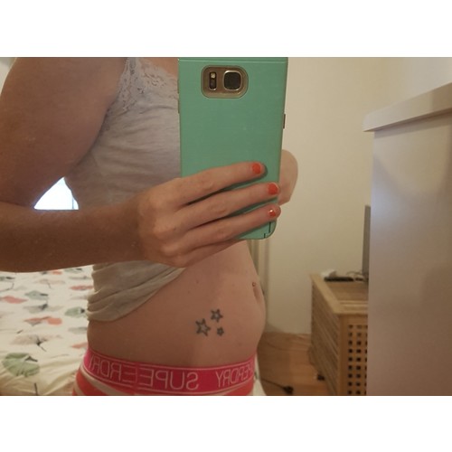 Iedereen reageert anders. Ik ben van week zeven tot week achttien non stop misselijk geweest maar heb sindsdien niet zo veel last meer. Af en toe een zure oprisping, soms wat rusteloze benen in de nacht. Ik vraag me bijvoorbeeld af wat een harde buik is. Nog niet gehad.