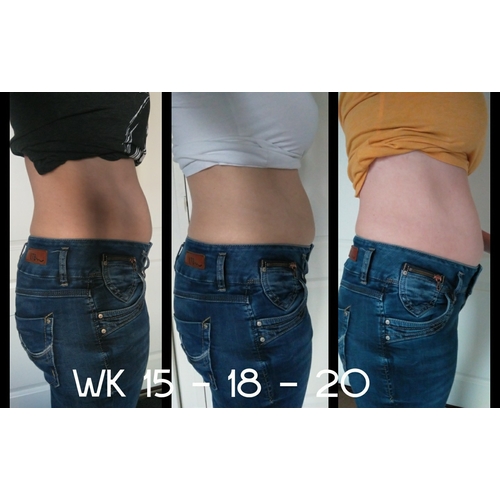 Ik ben nu zwanger van m'n tweede, en kreeg ook pas met ongeveer 17 weken een buikje. Inmiddels ben ik 22 weken en is m'n buik al behoorlijk groot!