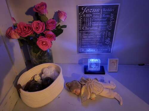 Wij hebben voor Sterre een gedenkplaatsje gemaakt in de woonkamerkast.