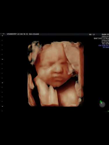 Met de groei echo van 34 weken liet ze even in 3d zien en ik vind dat ze er wel op lijkt