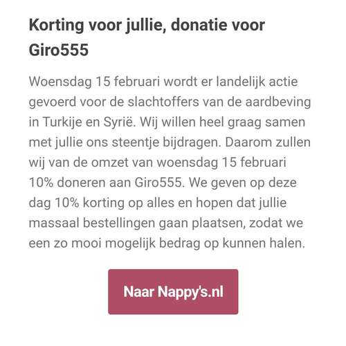 Ik ga zelf ook niet, maar zag dat Nappy's online 10% korting geeft t/m 18 februari.
