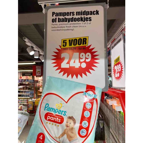 Hier moesten we nog maat 0 bij halen. Dus zou gewoon starten met 1 medium pak maat 1. Je hebt het zo bij gehaald. Pampers zijn echt overal wel in de aanbieding.